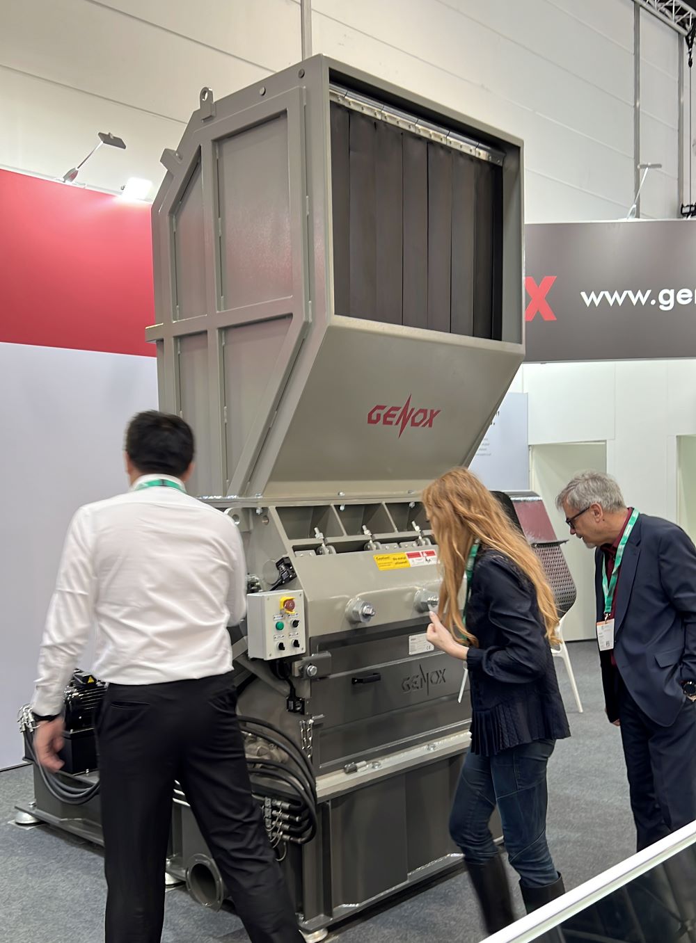 作为固废资源化领域的领军企业,隽诺环保展位现场人气爆棚。其中,BH1500L单轴撕碎机凭借高产量的物料处理能力、智能节能的运行系统,成为回收领域专业观众的重点咨询对象。该设备兼具高效撕碎能力与灵活调节优势,适合高产量大规模撕碎各种物料,尤其适合大尺寸或高硬度物料(如厚壁管、托板、周转箱、薄膜、编织袋、轻金属等),大容量料斗和料仓配合卧式平推系统最大限度发挥其撕碎高硬度大尺寸物料的优越性。设备完美契合展会的核心主题,成为本次展会“塑料回收技术”板块的风向标。
